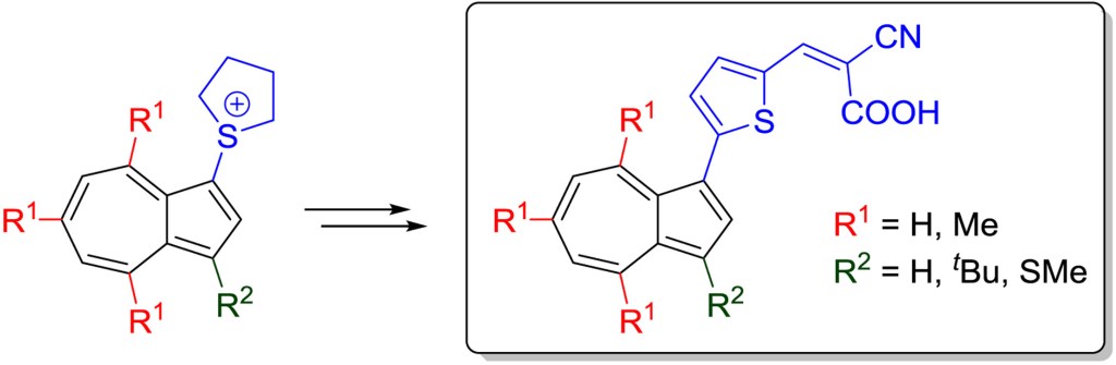 42.) “Azulene–Thiophene–Cyanoacrylic acid dyes with donor-π-acceptor structures. Synthesis, characterisation and evaluation in dye-sensitized solar cells”, Cowper, P*; Pockett, A.; Kociok-Köhn, G.; Cameron, P. J.; Lewis, S. E*, Tetrahedron, 2018, 74, 2775, doi:10.1016/j.tet.2018.04.043
