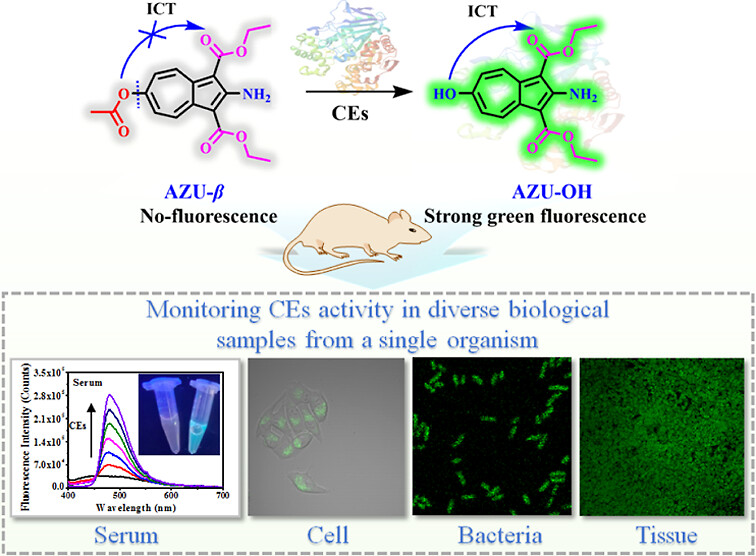 69.) “Amphiphilic azulene-based fluorescent probe for simultaneous monitoring of fluctuations in carboxylesterase activity in diverse biological samples from a single organism”, Cui, Z.; Wang, Y.; Wang, G.; Feng, B.; Lewis, S. E.; Wang, K.; Jiang, K.; James, T. D.*; Zhang, H.*, Anal. Chem., 2024, 96, 19732, doi:10.1021/acs.analchem.4c04926