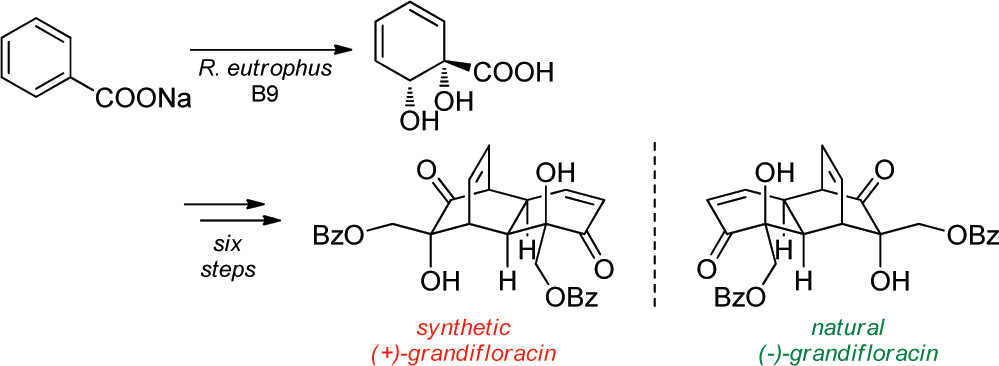 12.) “Total Synthesis of (+)-Grandifloracin by Iron Complexation of a Microbial Arene Oxidation Product”, Palframan, M. J.; Kociok-Köhn, G.; Lewis, S. E.* Org. Lett., 2011, 13, 3150, doi:10.1021/ol201057r