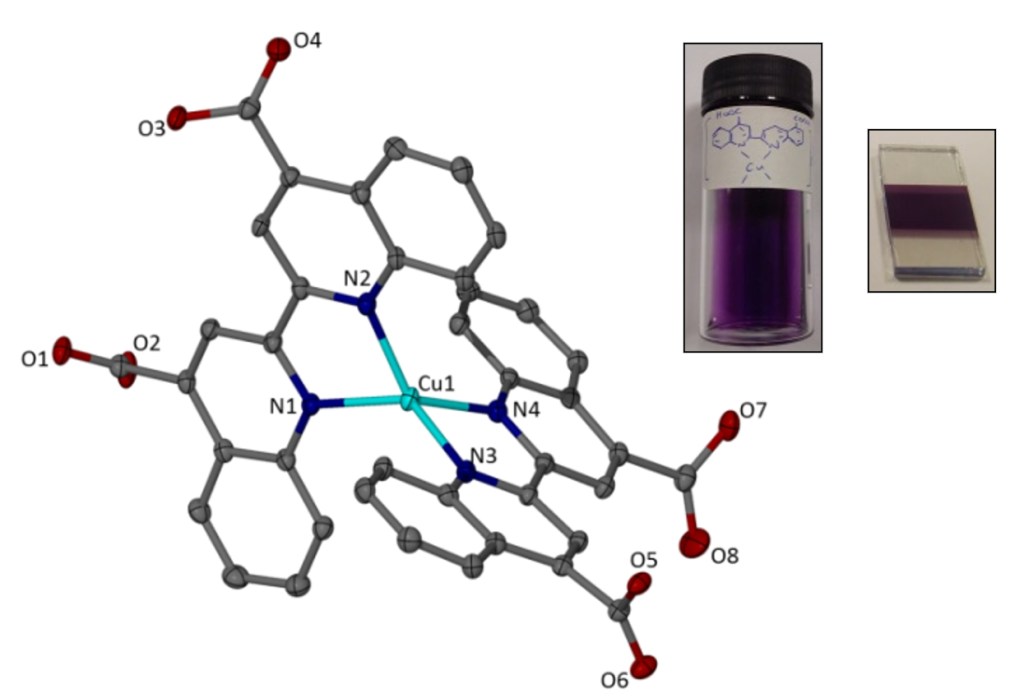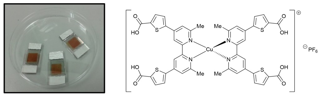 35.) “What difference does a thiophene make? Evaluation of a 4,4’-bis(thiophene) functionalised 2,2’-bipyridyl copper(I) complex in a dye-sensitized solar cell”, Wills, K. A.; Mandujano-Ramírez, H. A.; Merino, G.; Oskam, G.; Cowper, P.; Jones, M. D.*; Cameron, P. J.*; Lewis, S. E.* Dyes and Pigments, 2016, 134, 419, doi:10.1016/j.dyepig.2016.07.023