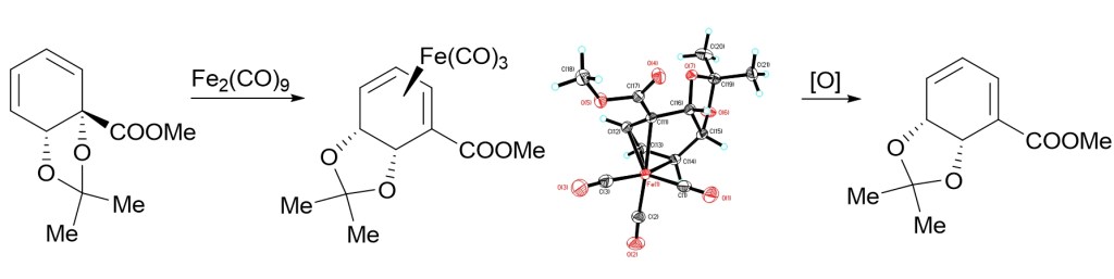 8.) “Iron(0)tricarbonyl Complexes of Microbially-Derived Cyclohexadiene Ligands Containing Quaternary Stereocenters”, Ali Khan, M.; Mahon, M. F.; Stewart, A. J. W.; Lewis, S. E.* Organometallics, 2010, 29, 199, doi:10.1021/om9009069 [Not open access]